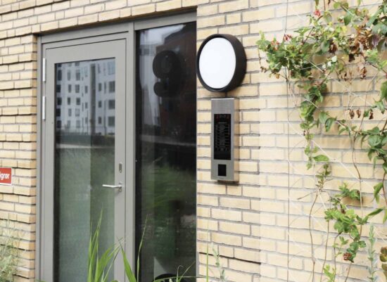 I toppen af artiklen kan du se hvordan Scantron's dørtelefon er sat op på ejendommen, vi bor på. Problemet er dog, at kameraet ikke er vinklet og er placeret et godt stykke fra døren.