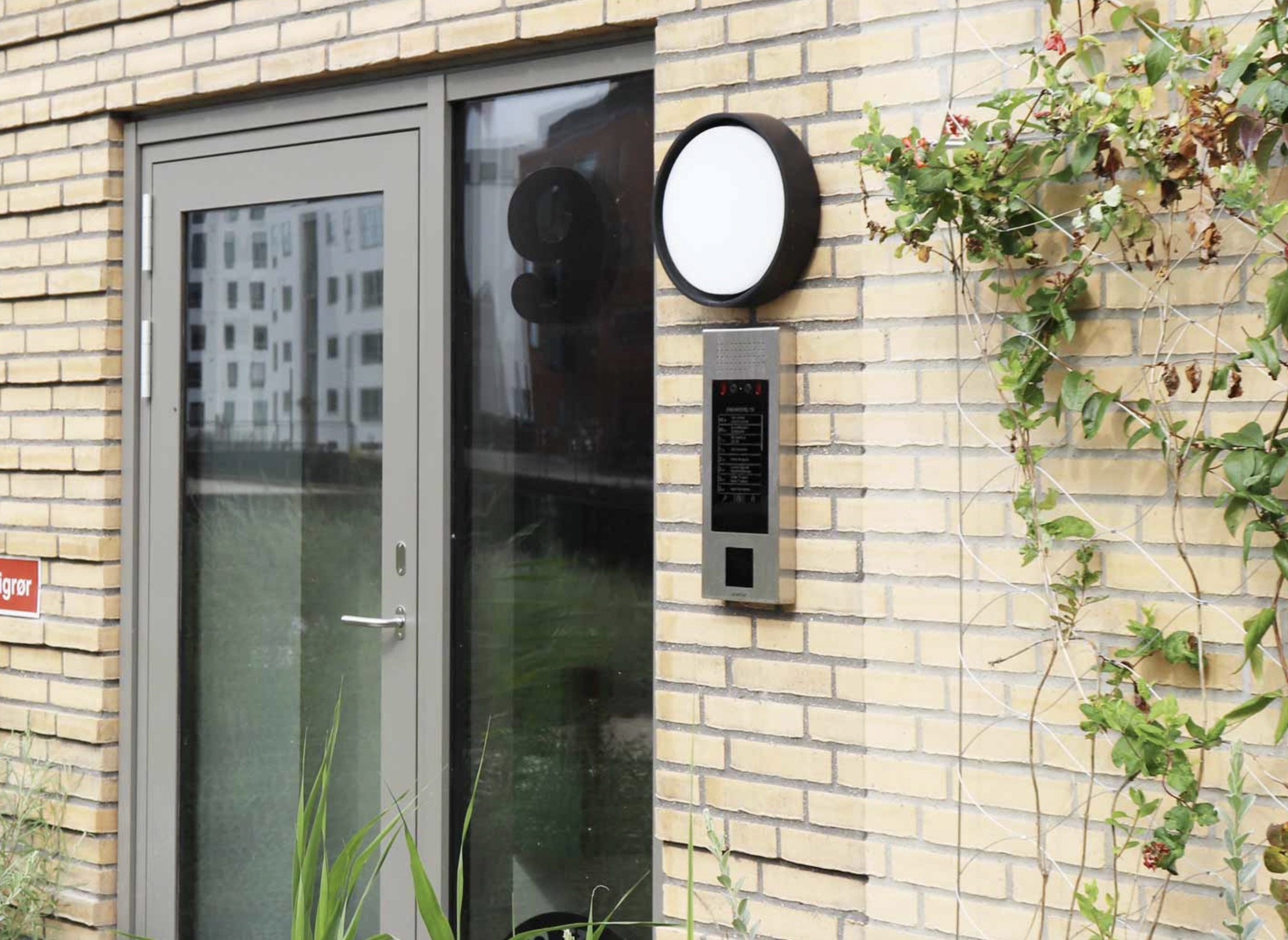 Dørstationen ud til gaden er en touchskærm, og da der er flere beboere, end der kan være på skærmen, skal med scrolle med som på en iPad for at finde vores navn. Det er ikke alle, der ved det, især fordi der ingen visuel indikation er på, at man kan scrolle ned. Derfor har vi været nødsaget til at skrive i fx leveringsinstruktionerne i Wolt: "Scroll down on the screen like an iPad."